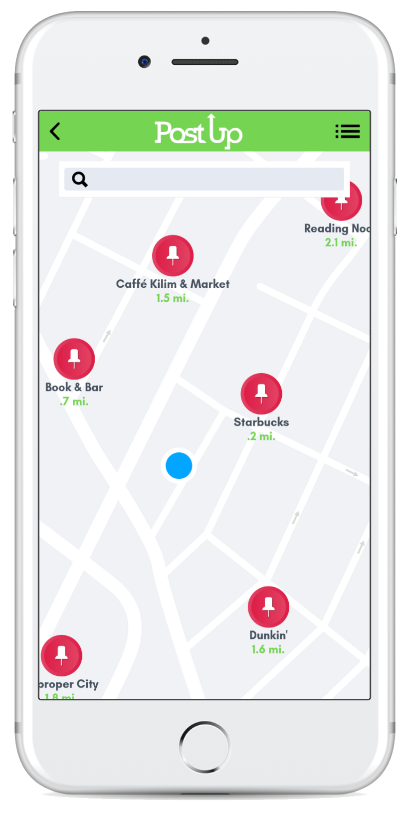 This app is super simple and to the point. No cognitive loading but also not a lot of details about the locations. I think this setup with options for more details on the locations would be a great start to PostUp.